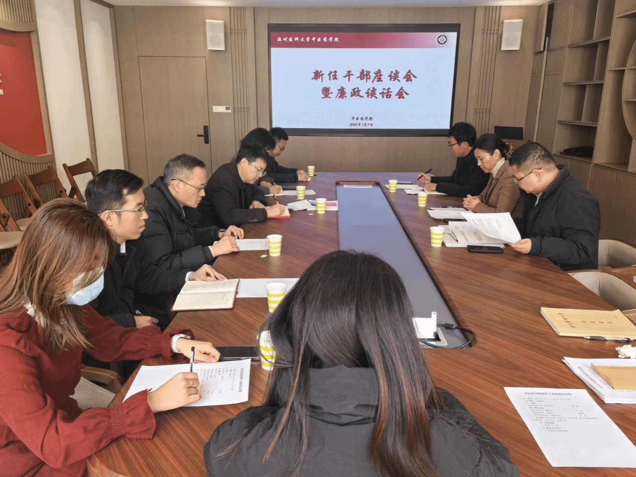 1月7日,开云体育 召开新任干部座谈会暨廉政谈话会,院党委书记、副院长刘瑜,党委委员、副院长袁拯忠,党委副书记、纪委书记梁栋出席会议,会议由梁栋主持。开云体育 新选聘的各系主任、副主任、主任助理,新当选的党委委员、纪委委员、支部书记,科级干部参加会议。