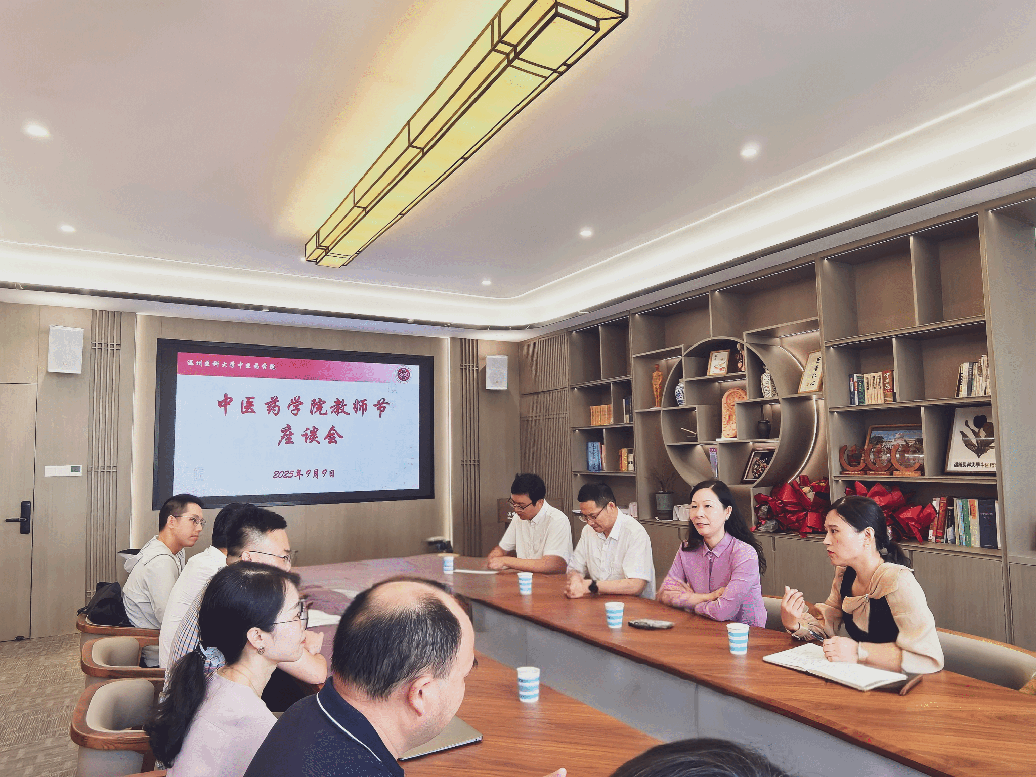 夏尽蝉歇,秋始风清。在第41个教师节来临之际,为弘扬尊师重教的良好风尚,开云体育 中医药开云体育 于9月9日上午在会议室召开教师节座谈会。开云体育 党委委员、各科室负责人、系主任、党支部书记、科研组、教学组、产业组组长、第四层次人才以及从教满20周年和30周年的教师等齐聚一堂,共庆佳节,畅谈育人心得,展望开云体育 发展。会议由开云体育 党委书记刘瑜主持。开云体育 党委委员、副校长朱雪波在开云体育 教务处处长李章平陪同下,亲临座谈会现场,代表开云体育 向开云体育 全体教职工致以节日的诚挚问候。