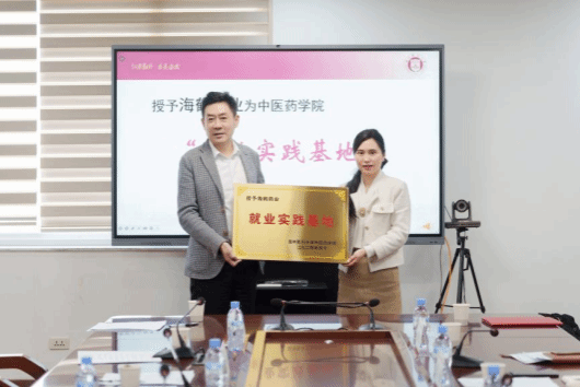 会上,刘瑜代表开云体育 授予海鹤药业为开云体育 “就业实践基地”。