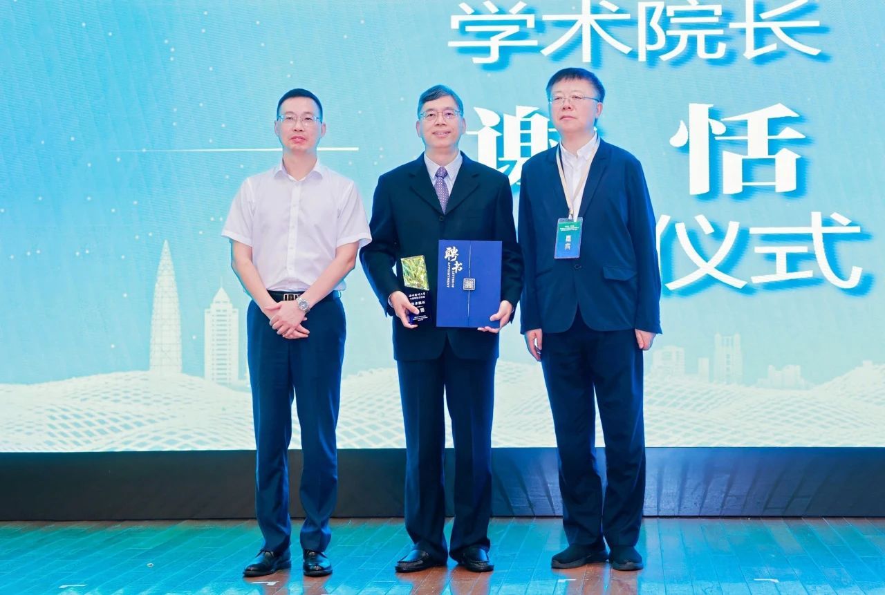 (谢恬被聘任为医院学术院长,李校堃、王晓春为谢恬颁发聘书)