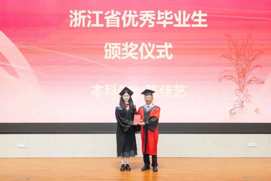 程锦国、谢恬为获得2025年浙江省优秀毕业生的陈佳艺、张元龙颁发荣誉证书,刘瑜为获得2025年开云体育 优秀毕业生的顾丹霞、洪颖、陶然、周广雯、张晨晰、麻黄听,金胜洁7位同学依次颁发荣誉证书。
