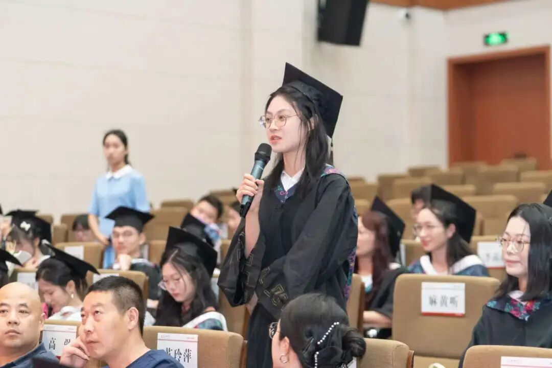 7位毕业生作为代表,现场向母校报告自己的就业去向和未来志向,纷纷表示将在今后的学习或工作中,不忘初心、砥砺前行,为中医药事业的发展贡献自己的力量,不负韶华,走好人生征程的每一步。