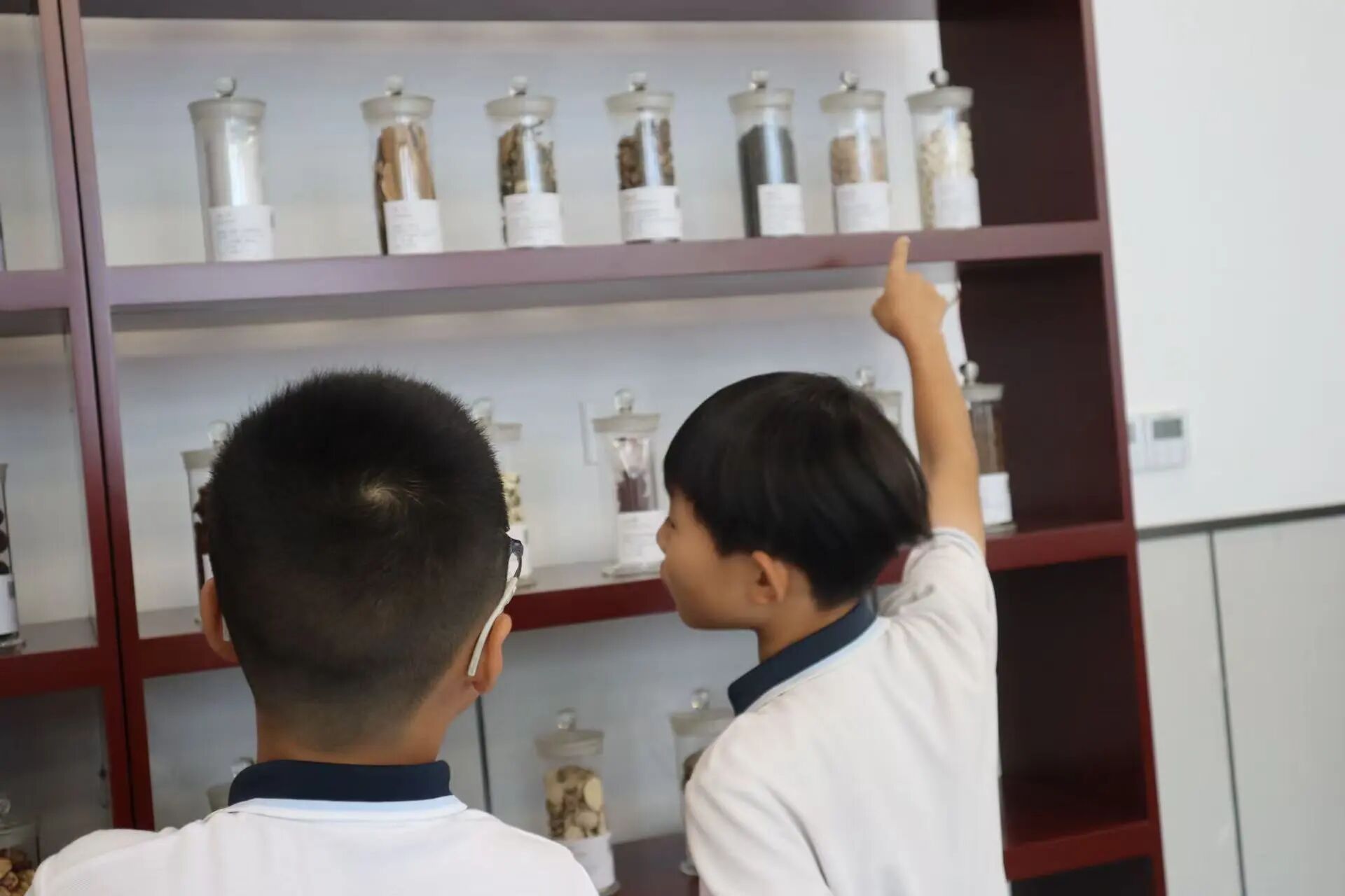 在弥漫着草木清香的标本馆内,朱寅荻如数家珍。他引导小学生们驻足于浙八味等道地药材前,揭示“一方水土养一方药”的奥秘。朱老师指着形态各异的标本,向孩子们娓娓道来:“同学们,看这个颜色鲜艳的,它叫红花,可别小瞧它,在古代,它可是重要的活血化瘀良药呢!而这株看起来小小的植物,是薄荷,它的叶子不仅摸起来清凉,还能用来泡茶,喝了能提神醒脑。”朱老师不仅介绍了中药的功效,还讲述了许多有趣的中医药历史故事和民间传说,小学生们听得津津有味,一双双好奇的眼睛紧紧盯着标本,不时发出惊叹声。
